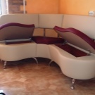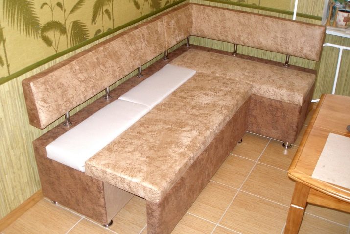 При производството на кухненски дивани се използват различни видове довършителни материали. По принцип за това се използват естествени кожи, еко кожа, платна против нокти. Когато избирате мека мебел за кухнята, на първо място трябва да обърнете внимание не само на красивия й вид, но и на практичността, лекотата на грижа. В тази стая има много агресивни фактори, които могат да повлияят негативно на вида тапицерия и самата конструкция. Следователно материалът на тапицерията на дивана трябва да бъде с високо качество..