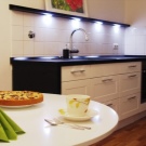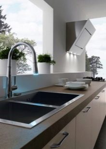 Ако искате да имате кухненски комплект на едно ниво, трябва да знаете, че такова оформление е подходящо за просторни стаи, тогава ще можете да запазите максималната възвръщаемост на кухнята и да получите желания резултат. Ами ако кухнята е малка? Комплект без горни шкафове хармонично ще изглежда в твърде тясна кухня или, напротив, широк; и в двата случая дизайнът на едно ниво визуално ще разшири или увеличи пространството, с една дума, ще го представи в благоприятна светлина.