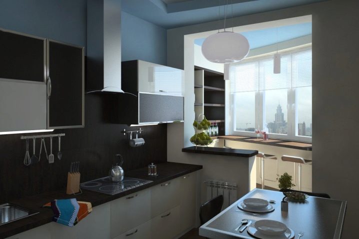 Кухнята може да се комбинира с балкон или лоджия и да използва допълнителното пространство като трапезария или място за съхранение.