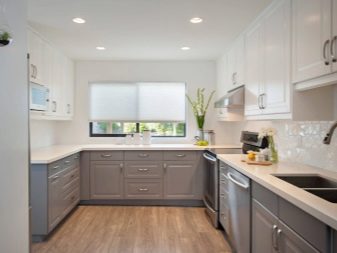 Най -голямото оборудване в кухнята е хладилникът. Тя трябва да е в зона за бърз достъп и да не претрупва пространството. Вграден или свободно стоящ: поставете го в началото или края на кухненския модул, но не в средата. Ако кухненското помещение не функционира като трапезария, тогава U-образният кухненски комплект ще пасне идеално.