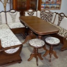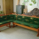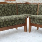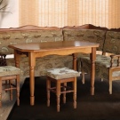 Ъглова група мебели, изработена от масивно дърво, обикновено се състои от няколко стола или табуретки, маса за хранене и един или два дивана, поставени отделно или свързани с триъгълен или полукръгъл рафт.