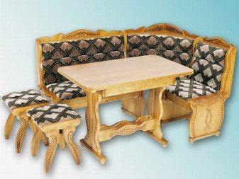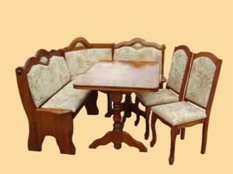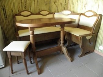 Най -доброто от всичко за такива мебели, макар и скъпи, но издръжлив дъб, гъвкав в работата и на достъпна цена, подходящи са бор и антибактериален и доста достъпен бук. Качеството на дървото определя дали комплектът ще бъде направен по най -простата технология или украсен с ажурни резбовани орнаменти, което, разбира се, значително влияе върху крайната цена. Най -икономичните – борови кухненски ъгли.