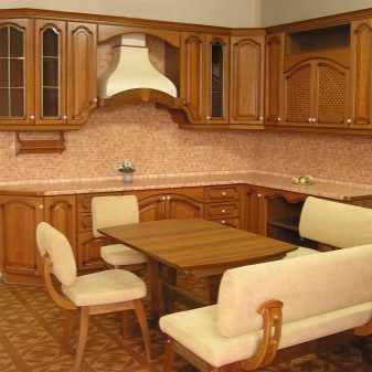 Много хора избират дървени мебели за кухнята, не само поради екологичността и издръжливостта на масива, но и поради изобилието от възможности за дизайн на ъглови групи за хранене, което им позволява да украсят почти всеки интериор.