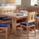 В допълнение към безусловното усещане за уют, което естественото дърво носи със себе си, ъгълът, направен от него, удобно и рационално зонира кухненското пространство и в същото време представлява единен мебелен ансамбъл, който не изисква почти никакви допълнения. Особено, ако неговите дивани с мека, практична тапицерия и са оборудвани с просторни кутии за съхранение.