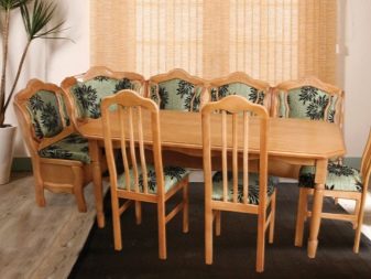Малки столове с облегалка и без подлакътници или табуретки на стабилни крака, които свободно се вписват под централния елемент на тази трапезария – маса – действат като допълнителни седалки. Неговият плот е във формата на кръг, овал, правоъгълник и дори всяка друга асиметрична форма и често е изработен от метал, дърво или стъкло – в зависимост от това кой материал е по -подходящ за стилистичното решение на кухненския ъгъл и размера на стая.