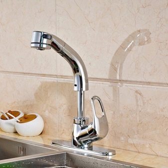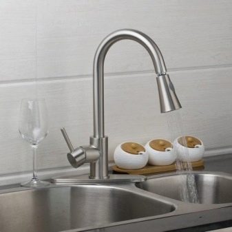 Изтеглящи се модели душ. Тази категория продукти е особено практична. Изваждащият се кран ви позволява лесно да изтегляте вода в голям съд (например кофа). Също така ви позволява да използвате един миксер с две мивки..