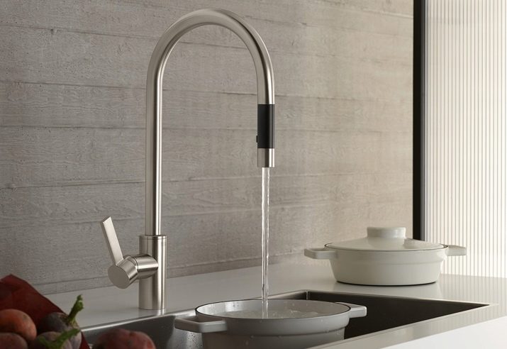 Опция с едно захващане по -практично. Водата се подава от едно леко движение. Това също е удобно, тъй като по време на процеса на готвене можете лесно да включите водата, за да изплакнете мръсните си ръце, без да докосвате дръжката на миксера с длани..