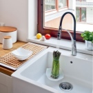 - Кухня. Елегантният смесител за кухненски мивки, изработен от месинг и хром, неръждаема стомана, има тип управление с едно рамо със стандартен чучур. Гаранция за експлоатационен живот – десет години. Модерен дизайн, ясни линии са отличителна черта на модела. Цена – 8,6 хиляди рубли.