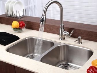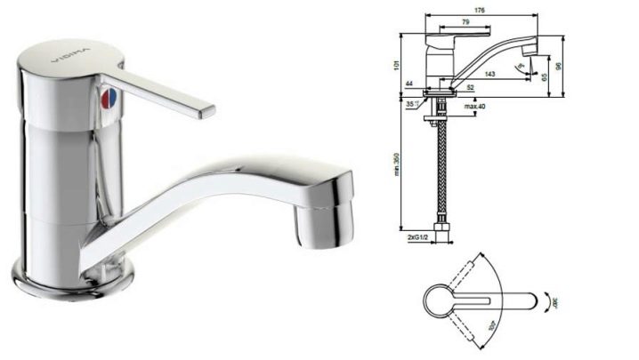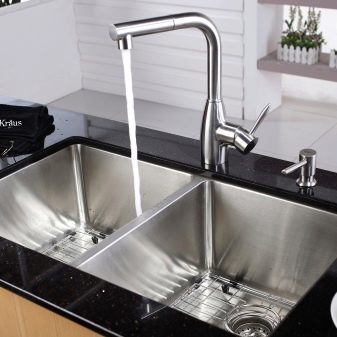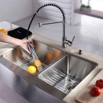 Инсталация – настолна, тоест инсталирана е директно върху повърхността на мивката или плота. Най -удобният за използване е кухненски миксер с лост, разположен отстрани на корпуса на миксера..