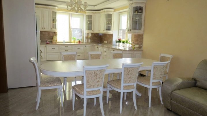 Масите от руски производители се различават по разнообразие от дизайни и форми, които могат да бъдат избрани за кухня с всякакъв размер. Ако сте щастлив собственик на просторна кухня, тогава за вас се предлагат кръгли и овални маси, на които може да се побере цялото семейство и гостите. За малките стаи изборът на маси също е доста широк. Най -често срещаният модел се счита за трансформираща се маса, която може да се превърне от малка маса в голяма празнична версия..