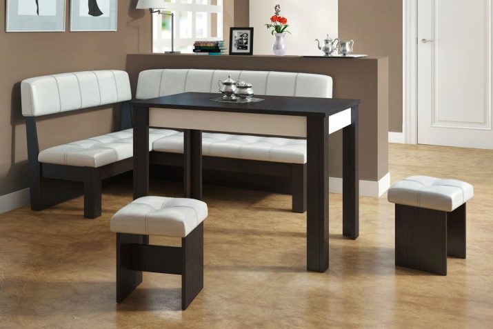 Кухненските мебели с ъгъл във формата на диван се считат за едни от най-популярните. Тази опция е подходяща както за малки, така и за просторни стаи. Разликата се крие в размерите на самия ъгъл. Тук може да ви бъде предложен шикозен мек ъглов диван с удобен гръб или скромен миниатюрен диван..