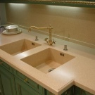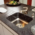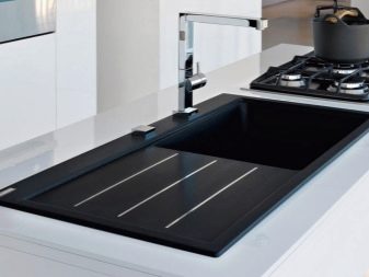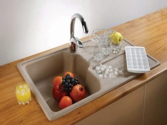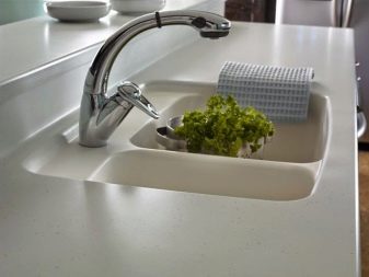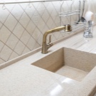 - Звукоизолация. С изкуствен камък такива неприятности, като с неръждаема стомана, няма да възникнат, той перфектно абсорбира шума.