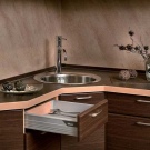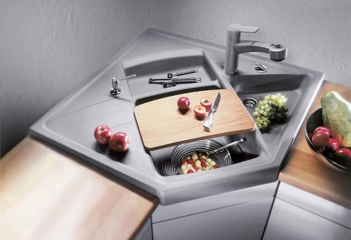 Мястото, където да инсталирате мивката, трябва да бъде избрано за размера на кухнята, а също и въз основа на удобството. Например, ако стаята е малка, функционална ъглова мивка е перфектна и ако е най -удобно да се готви точно до мивката, тогава няма смисъл да я инсталирате в отделен шкаф..