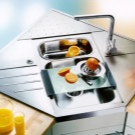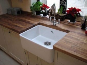 Товарителница. Много популярен и лесен за инсталиране тип. Мивката просто се поставя върху горната част на шкафа и заема целия й връх, вместо плота. Най -често такъв дизайн има крило, което му позволява да се използва двойно функционално..