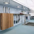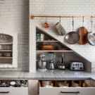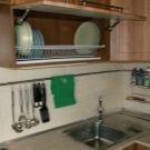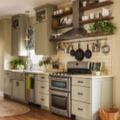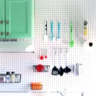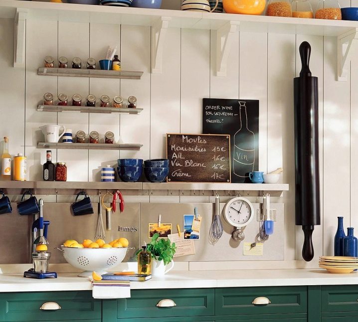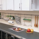 Най -добре е да закачите инструментите, които домакинята използва всеки ден върху куки над работната повърхност – лопати, лъжици с решетки, черпаци, бъркалки, порционни лъжици и дъски за рязане. Също така си струва да окачите държач за хартиена кърпа там. Такива държачи обикновено се предлагат в комплект от 2-3 бр., Удобно е да ги закачите един под друг..
