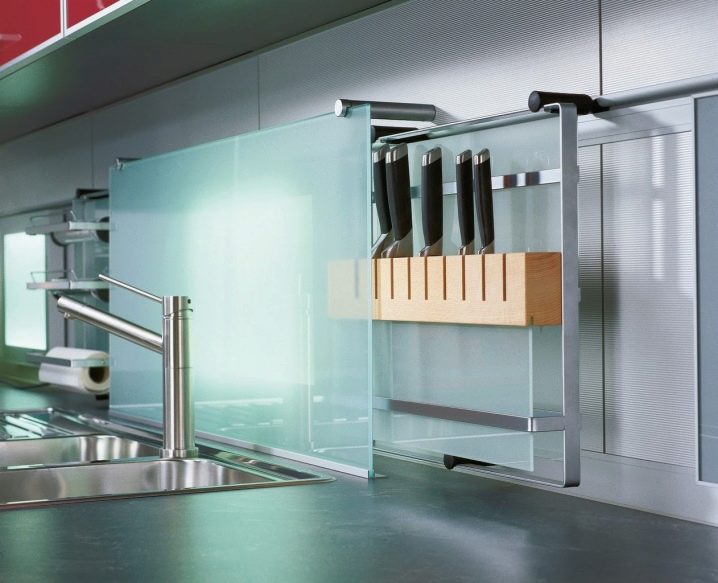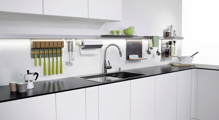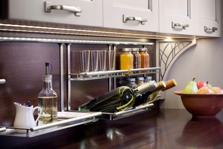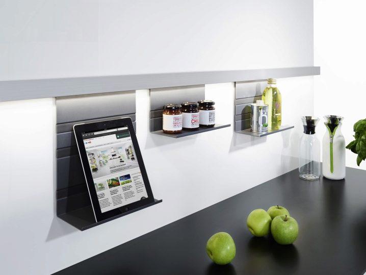 - Компактност. Поради лекотата на дизайна и малките си размери, те могат лесно да бъдат разположени по целия периметър на кухнята, дори по стените на шкафовете, като по този начин заемат безполезно пространство..