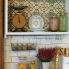 А купчинки люти чушки, чесън или сушени билки, окачени на стойките, ще добавят фолклорен вкус към интериора. Впечатлението ще бъде допълнено от декоративни дървени лъжици или дъски за рязане с народна живопис.
