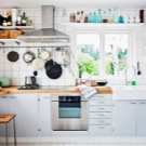 Добре е да поставите ръкавици за фурната до печката и да поставите рафтове, където могат да се поставят буркани с подправки. Не е необходимо да съхранявате перилни препарати до печката – това е опасно и съдовете, тъй като върху него ще има разпръснати капки мазнини.