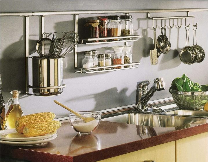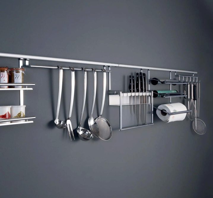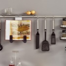 На помощ на съвременната любовница дойдоха такива устройства като релси на покрива. Те позволяват не само да поддържат постоянен ред в кухнята, но и са отлично допълнение към интериора, съчетавайки функционалност и стилен външен вид..
