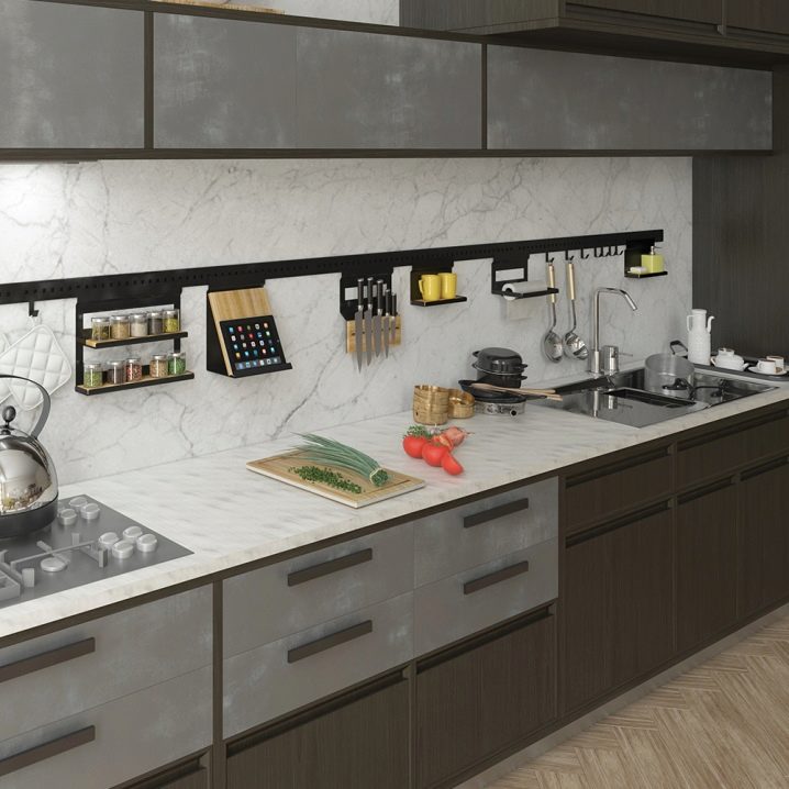 По време на съществуването си, покривните релси са заели здраво своето място в кухнята на всяка домакиня. Независимо дали имате нужда от удобни държачи за хартиени кърпи или висящи рафтове за буркани и подправки, куки за сервиране на лъжици или поставки – дизайнът на парапета осигурява огромен брой модули.