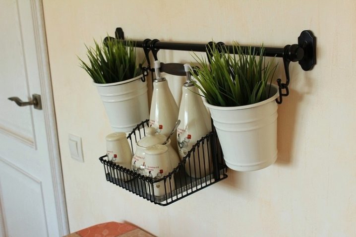Ако релсата е на свободна стена, добре е да поставите върху нея декоративни елементи – малки, спретнати саксии с цветя, часовници, кошници с плодове, хляб или кърпи.