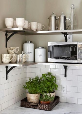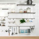 Това на пръв поглед неусложнено действие е достатъчно важно. Местоположението на рафта зависи от предназначението му. Напълно неприемливо е поставянето на багажник за цветя на място, където слънчевата светлина не пада, и стелаж за чинии на разстояние пет метра от мивката. Освен това трябва предварително да предвидите такива нюанси като използваемост. Ако долният ръб на рафта е на нивото на храма и самият той виси близо до самия вход, това може да бъде опасно.