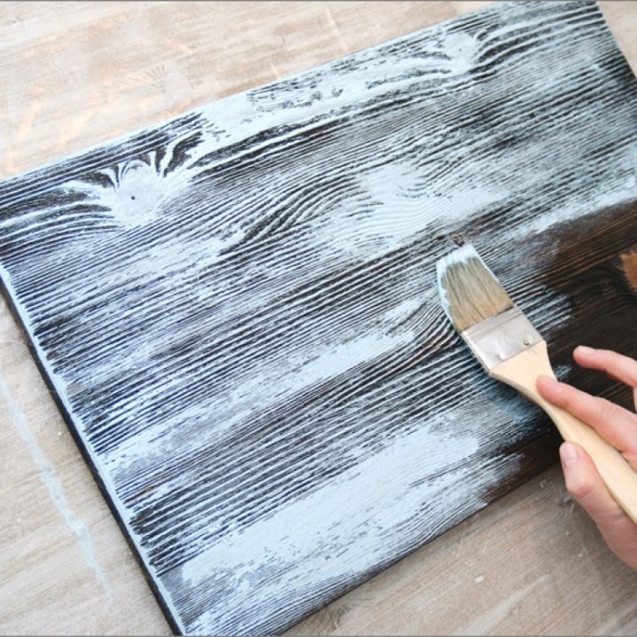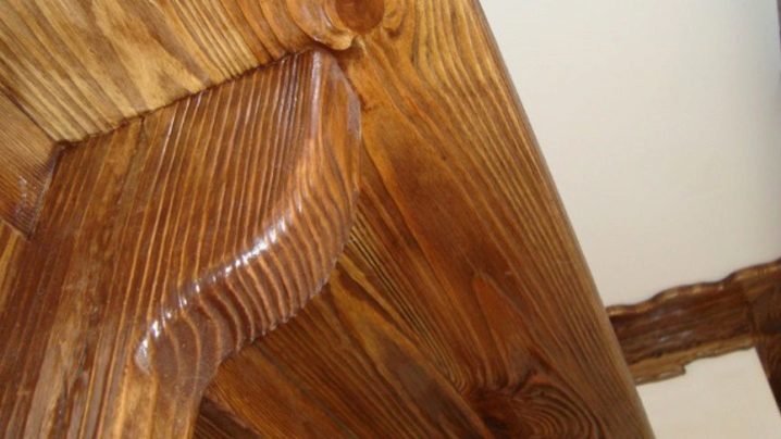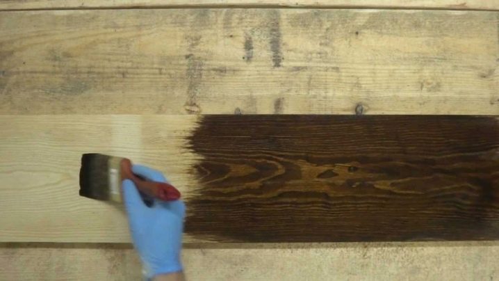 За да подчертаете текстурата, използвайте петно. Ако под ръка няма готово петно, можете да използвате слаб разтвор на калиев перманганат. Преди да оцветите целия рафт, трябва да проверите покритието върху останалите парчета..