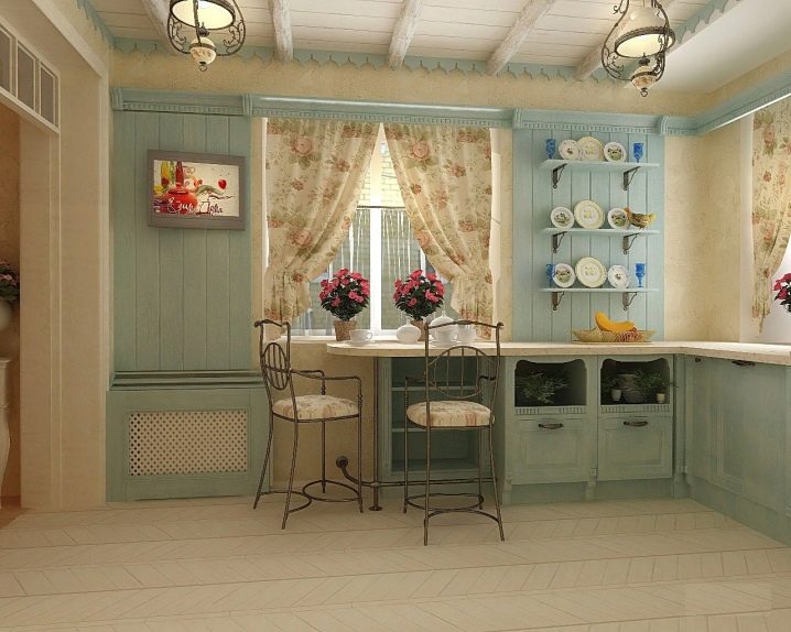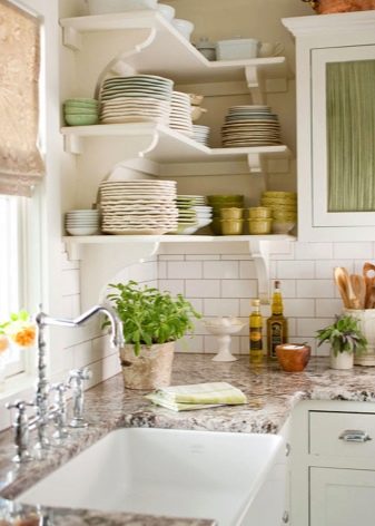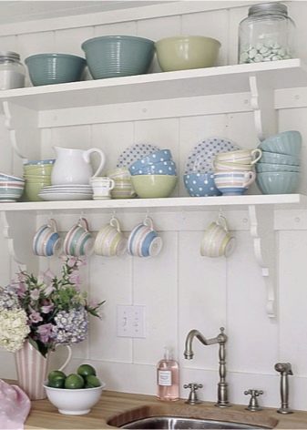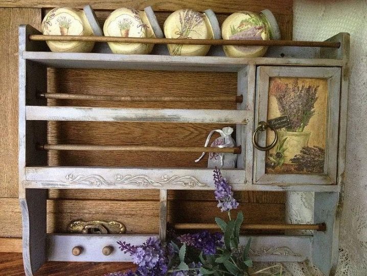 Стил “Прованс”, изисква използването на естествени материали, изкуственото “стареене” на дърво или “античен” дизайн се приветства, но нищо не пречи на използването на боя, която съответства на цвета. Възможностите за изработка на рафтове са ограничени само от полета на въображението на този, който ги прави..