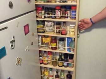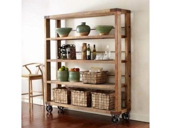 Има ситуации, когато в кухнята има свободно място, но има много малко от него. Например празно пространство с ширина 20-30 сантиметра между две кухненски маси или маса и стена. В този случай можете лесно да превърнете свободно стоящия рафт в разтегателен или издърпващ се рафт. За да направите това, просто трябва да закупите четири мебелни колела в хардуерния отдел на железария и да ги завиете в ъглите..