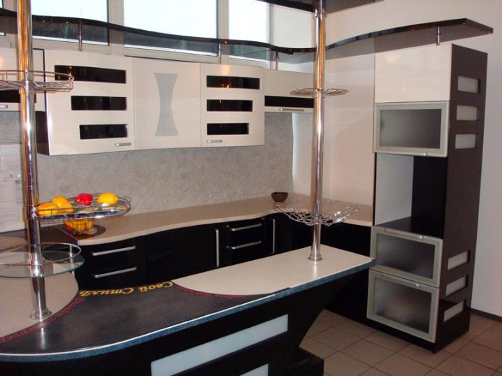Мебелите могат да имат различни фасади. Предната част на шкафа може да бъде боядисана във всеки цвят, нанесена с фотографско фолио и полирана. Благодарение на интересния завършек на фасадата, ще придадете на мебелите си оригинален вид. Този шкаф ще украси перфектно вашата кухня. Ако покриете предната част на шкафа със специален филм, ще бъде по -лесно и по -удобно да се грижите за мебелите..
