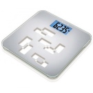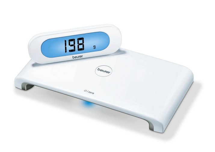 Стилните сгъваеми везни Beurer имат интересна особеност: монтиране на стена, което спестява място. Те имат малка кръгла стъклена платформа за претегляне (ограничение от 5 кг), стандартни спецификации, автоматично изключване, измерване на течността, индикация на времето и изтощена батерия. Такива кухненски везни са представени, само в бяло.