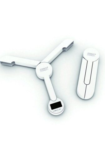 Може би това е един от най -интересните модели електронни кухненски везни днес. Сгъваемите везни, когато са разгънати по форма, приличат на „знака на свободата“ или емблемата на Mercedes – Benz, когато са сгънати, те заемат почти повече място от нож или тирбушон. Такива везни не само са в крак с други модели по отношение на техническите характеристики, но също така са надарени с най -модерните функции: контрол на докосването, броене на калории и контрол на пропорциите на съставките. Везните се предлагат в два цвята: маслинен и бял. Сравнително висока цена съответства на качеството и мултифункционалността.
