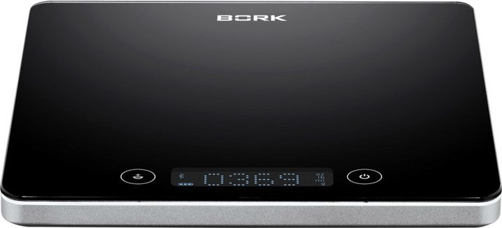 Моделът Bork N780 е наистина революционен – той се отличава с възможността за синхронизиране със специално приложение на вашия смартфон, което ще ви помогне правилно да изчислите калориите, като вземете предвид протеините, мазнините и въглехидратите. Везната е оборудвана с пълен набор от допълнителни функции, с изключение на тарирането. Недостатък – те изискват 4 батерии AAA наведнъж и са едни от най -скъпите на пазара днес..