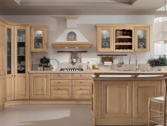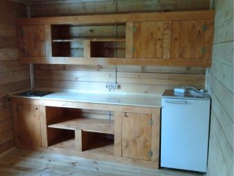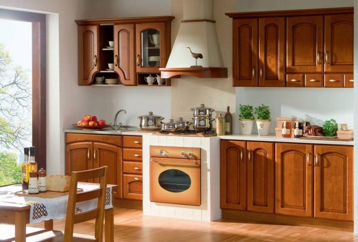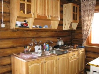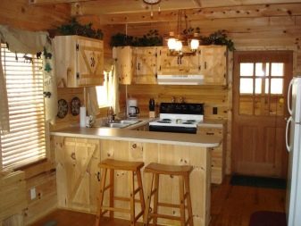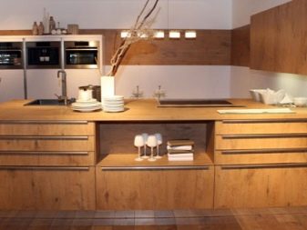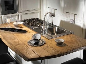Ако сте поддръжник на естествени и здравословни материали, можете да направите кухненски комплект от дърво. Не забравяйте, че такива мебели ще бъдат чувствителни към промени в температурата и влажността. Всеки детайл ще трябва да бъде третиран със специална импрегнация и антисептик.