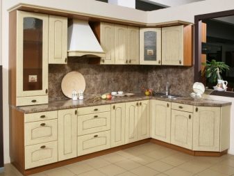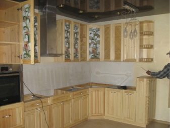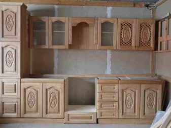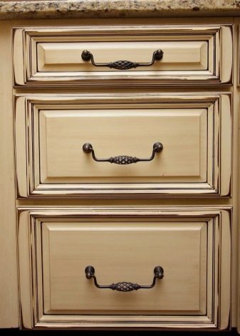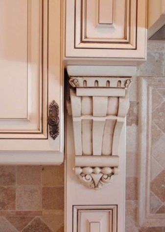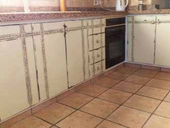 Необичайният обков придава на кухненските мебели оригинален вид. Например, можете да направите дръжки от прибори за хранене или малки чаши за кафе. Магазините продават различни къдрави бордюри, накладки, имитиращи дърворезба.