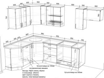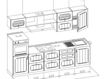 - Ако имате възможност, можете да поръчате необходимите компоненти за кухнята, като вземете предвид избраните размери. Когато изчислявате параметрите, обърнете специално внимание на размера на чекмеджетата. Размерът на декоративната фасада ще зависи от тези размери. Решаването на проблема с местоположението на рафтовете ще ви помогне да определите необходимия брой.