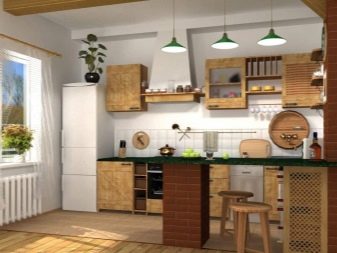 Тухлените кухненски мебели заслужават специално внимание. Този стил се нарича “акостиран”. Той не е много популярен, но все пак има фенове. Тухлените мебели изглеждат впечатляващо на закрито и му придават солидност. Този материал ще изглежда най-добре в голяма кухня, тъй като ще бъде трудно да поставите пълноценни шкафове в малко пространство..