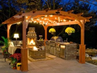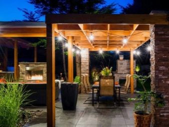 Не забравяйте за осветлението. Различните фенери и висящите лампи в отворена лятна кухня трябва да се избират внимателно, защото те трябва да имат спомагателна защита срещу вода.