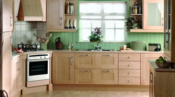 Кухненски комплект, изработен от мебелна дъска, е по -удобен, защото има богат избор от стандартни размери.