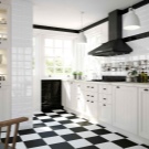 - Керамични плочки – най -често използваният материал за довършване на кухненски гръб. Безспорни предимства: устойчивост на различни видове замърсявания, топлоустойчивост, устойчивост на влага, високи декоративни свойства. Единственият минус е наличието на шевове по повърхността на платното, което затруднява малко грижите за него..
