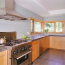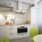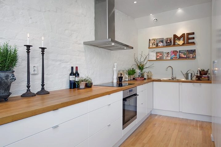 - Струва си да обърнете специално внимание на избора на качулка. Всъщност, в кухня без горни шкафове, тя ще бъде един от централните елементи на интериора..