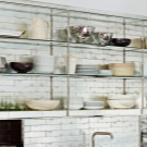 Отворените рафтове отгоре се вписват идеално във всеки модерен интериор, било то "минимализъм", класически стил или "Прованс" и "страна". Вази, кани, декоративни чинии, буркани с насипни продукти и подправки, саксии с пикантни билки ще изглеждат страхотно на рафтовете. Основното условие е те винаги да са в ред, за да не създават усещане за претрупване в пространството. В допълнение към декоративните функции, горните рафтове имат и очевидни практически свойства: необходимите кухненски прибори винаги са на очи и винаги ще бъдат под ръка в точното време..