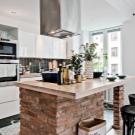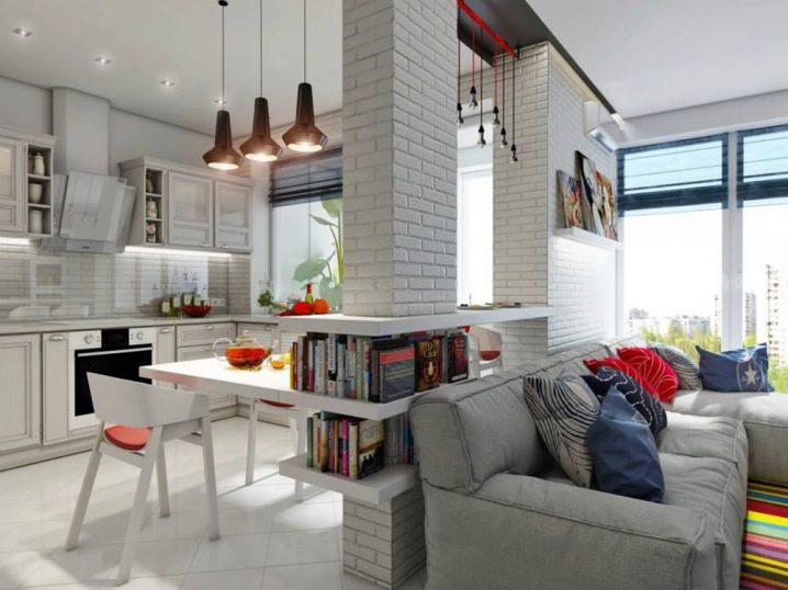 - Компетентно зониране на помещението. Ако планирате кухня – хол, можете да разграничите тези две стаи с колона с колона. Може да се използва и като опора за маса или бар.