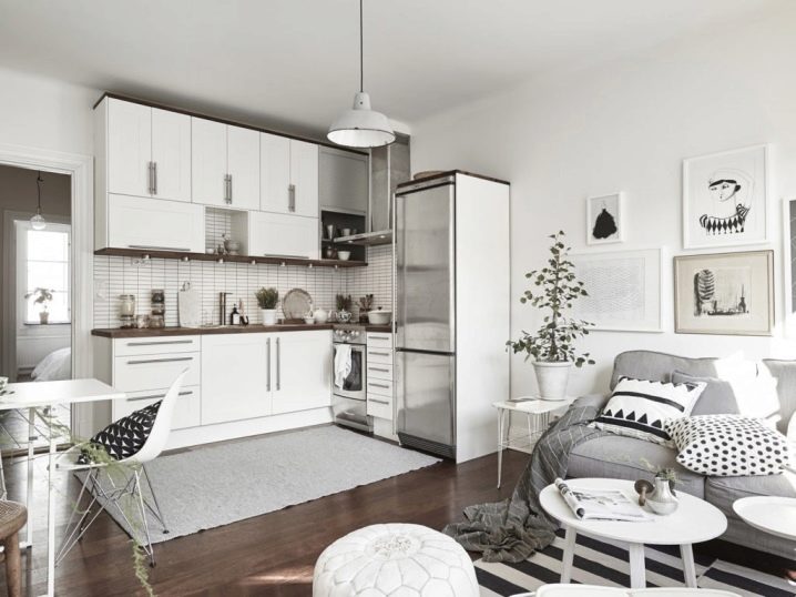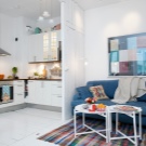 Дизайн за кухнята – холът в скандинавски стил често се избира за студиа и едностайни апартаменти с ограничено пространство. В такъв интериор кухнята трябва да бъде не само стая, където се приготвя храна, но и място, където можете да се съберете на масата и да се отпуснете на чаша чай след натоварен ден. Кухня – всекидневната трябва да бъде една със стаята и в нея трябва да има много светлина.
