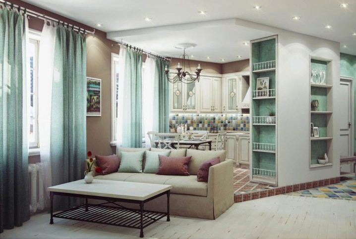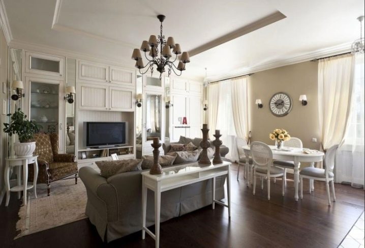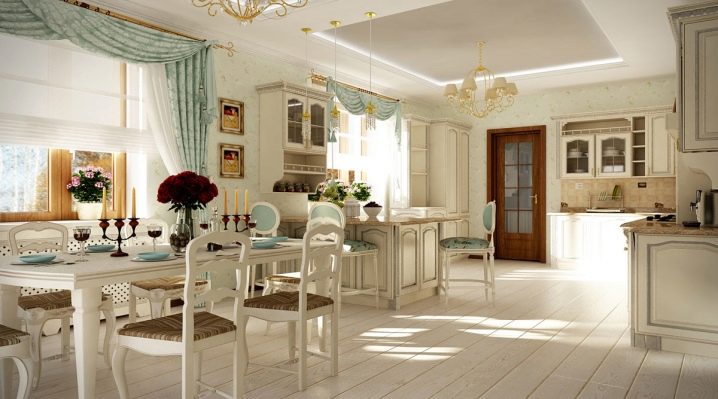 Изисканият френски стил е много подходящ за интериорна декорация на модерни стаи. В идеалния случай тя ще се впише в комбинираната всекидневна в стил Прованс. Френският шик ще направи дори и най -малката стая стилна и привлекателна.