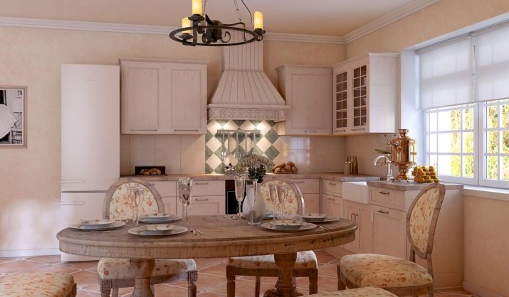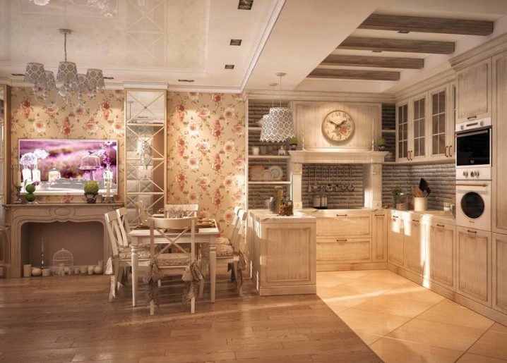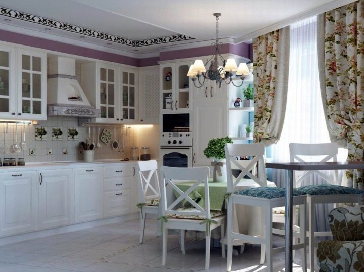 Кухнята-хол в стил Прованс не трябва да бъде твърде претенциозна. Освен това, въпреки факта, че този стил се характеризира с декориране на пространството с различни дреболии, не трябва да претрупвате стаята твърде много. Стилът на Прованс е преди всичко естественост, френска изтънченост, комфорт и простота.