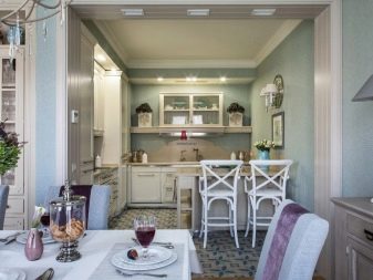 Стилът на Прованс е възможност да създадете уютна атмосфера и да подчертаете индивидуалността на една стая, дори и с най -простото оформление. В такава кухня-хол ще се чувствате комфортно да прекарвате времето си със семейството си, да приготвяте вкусни вечери и да се срещате с приятели на бутилка вино..