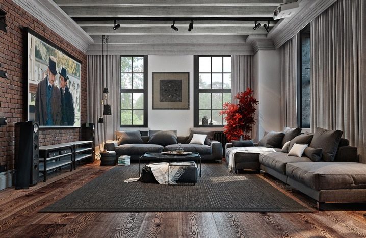 Смята се, че стаята в стил таванско помещение трябва да има много стилни мебели и съвременни технологии. Това е друга отличителна черта на стила. Основните детайли на такъв интериор са масивен диван, разположен в центъра на стаята, масичка за кафе и няколко рафта и шкафове..