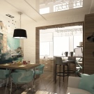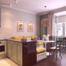 - работна зона. Ако напълно демонтирате преградата, нощните шкафчета и някои кухненски уреди могат да бъдат прехвърлени на бившия балкон. Това ще помогне за увеличаване на пространството в апартамента и ще остави място за трапезарията;