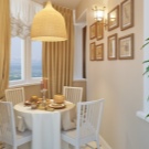 - организация на трапезарията. Тази опция е най -оптималната за малка кухня от 6 метра. Можете да преместите масата в лоджията или вместо това да използвате перваза на прозореца. Можете също да преместите столове или малки столове. Използвайки този метод, можете не само да спестите свободно пространство в дома си, но и да добавите нотки на романтика и комфорт по време на хранене;
